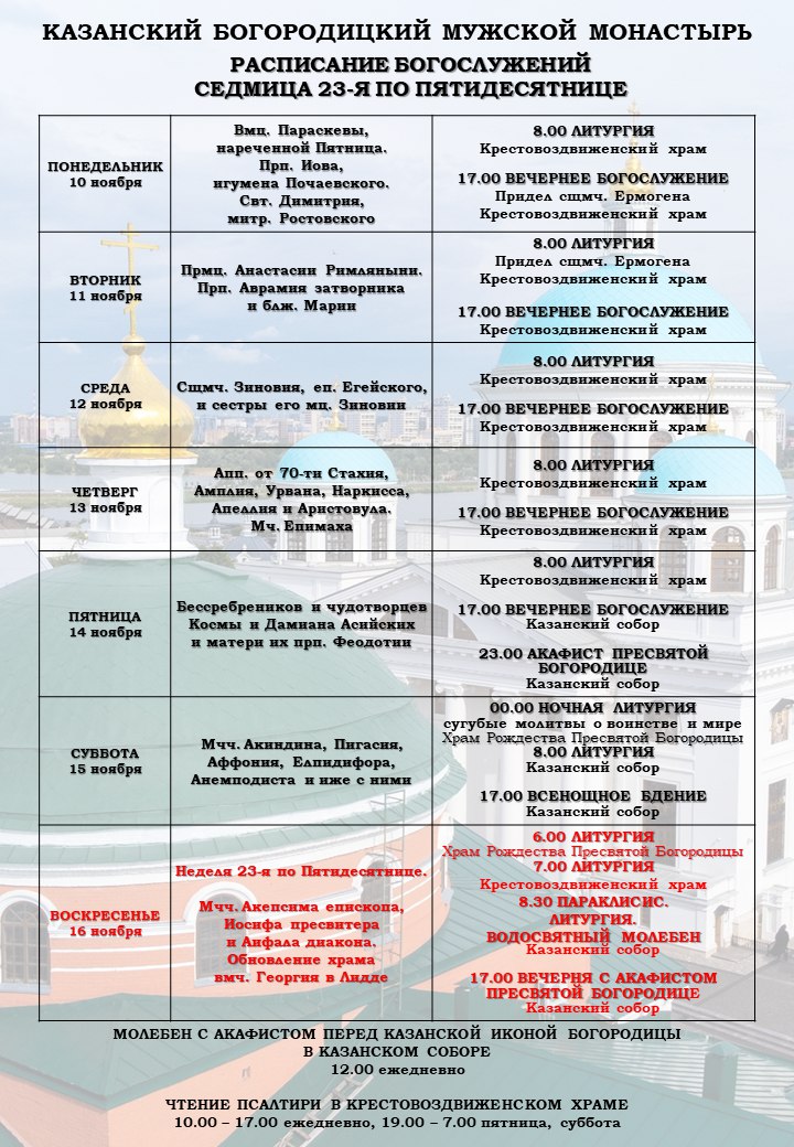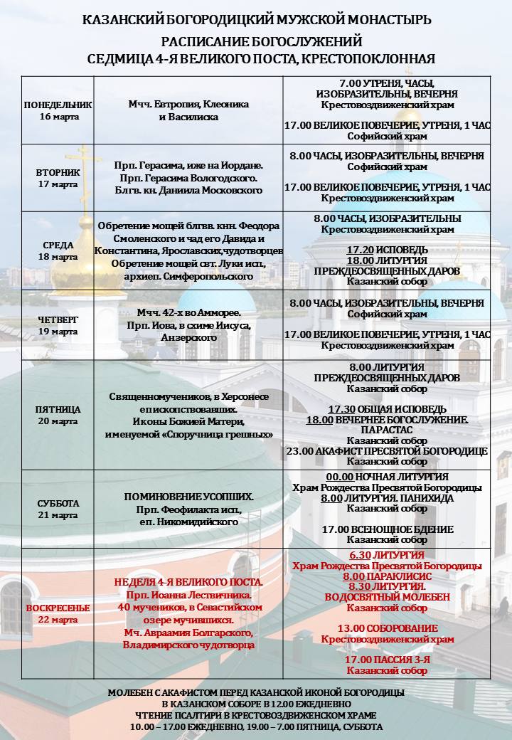Расписание богослужений