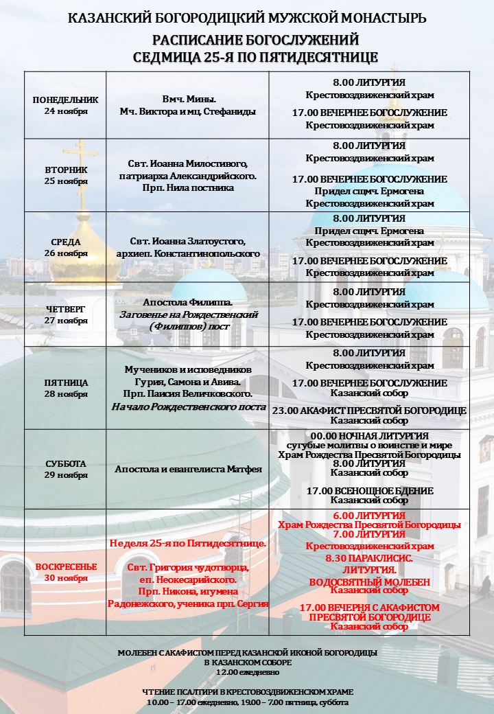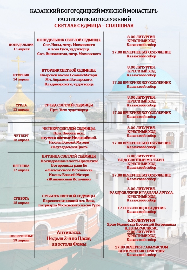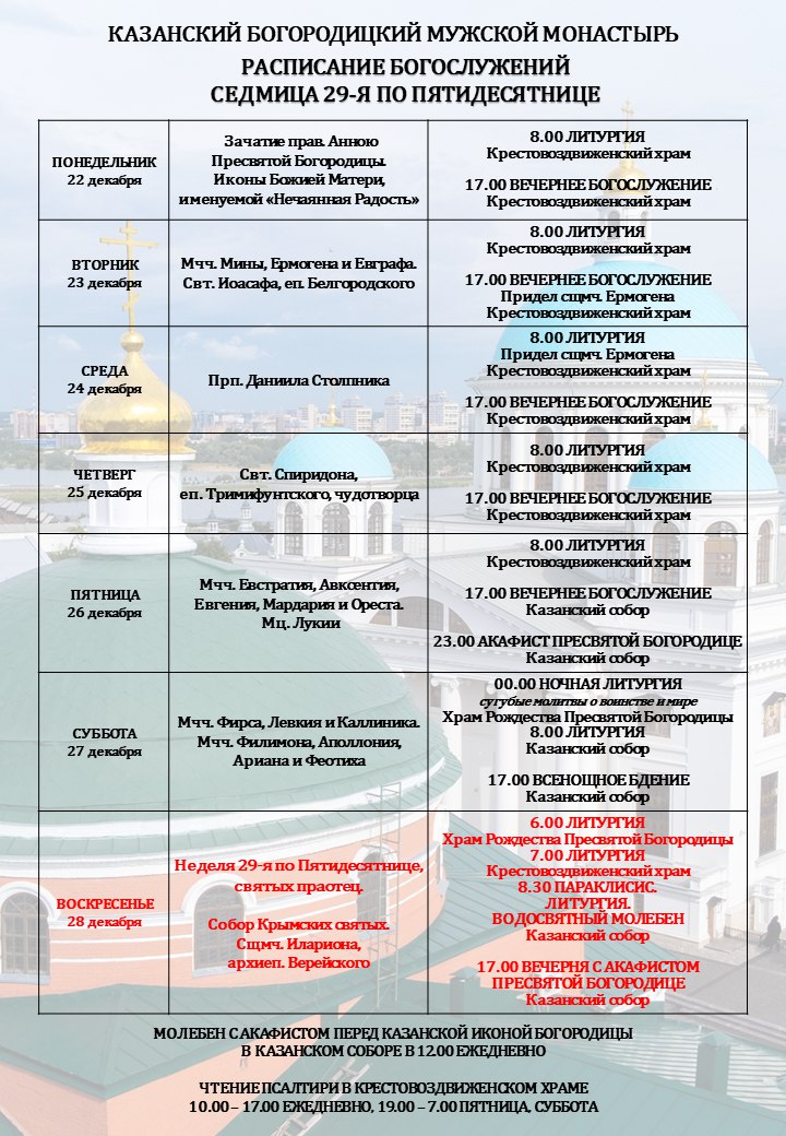 Расписание богослужений