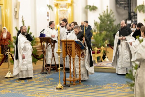 В канун Рождественского сочельника митрополит Кирилл молился за вечерним богослужением в Казанском кафедральном соборе