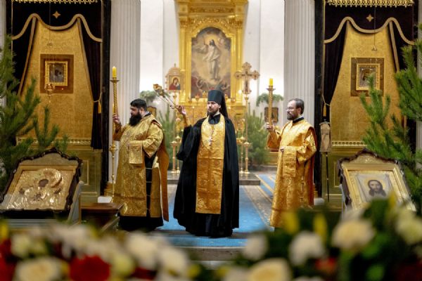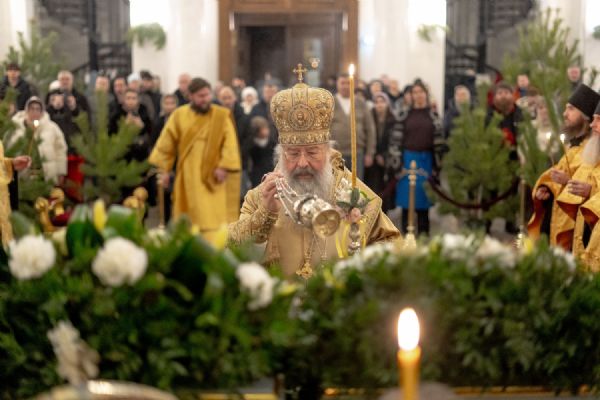 В Рождественский сочельник митрополит Кирилл совершил Литургию в Казанском кафедральном соборе