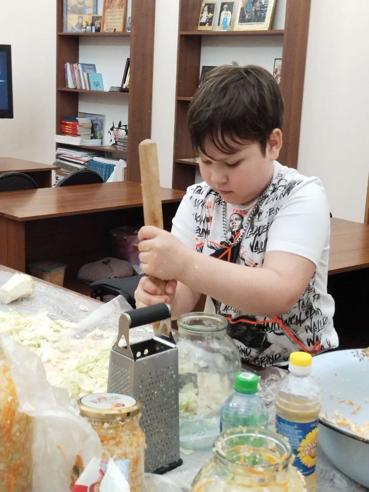 Впервые подобное мероприятие было проведено в нашей школе девять лет назад в рамках проекта «Русский терем» на кулинарных курсах, посвященных традиционной кухне. В этот раз участники приготовили вкуснейшие пироги. А капусту для дальнейшего квашения рубили так, как это делали в старину наши предки – используя специальное деревянное корыто и сечку. Каждый унес с собой домой банку с заготовкой.