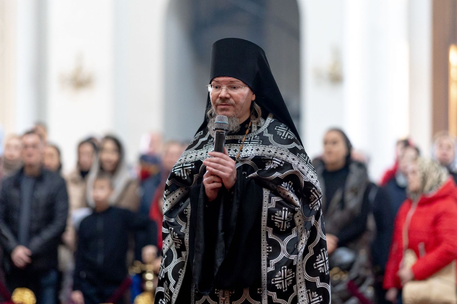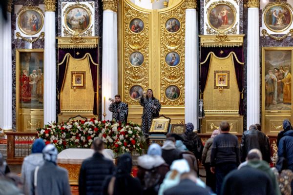 Богослужебные песнопения исполнили два архиерейских хора: смешанный под управлением Марины Литвиненко и мужской под управлением Дениса Рогова.